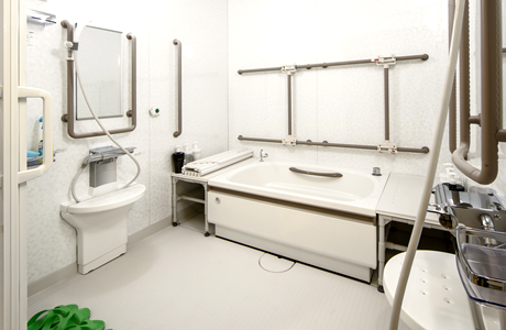 - 車いすでも安心してご利用いただける広さです。呼出しブザーも完備しています。